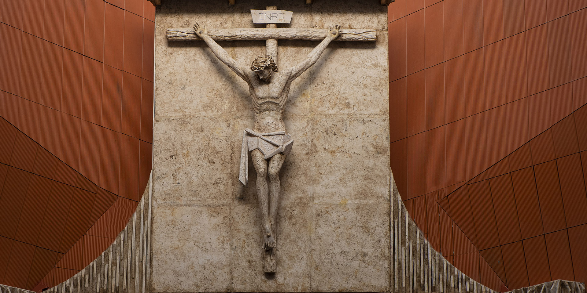 El crucificado es un Cristo vivo, que todavía no ha recibido la lanzada. Mira a aquel que se acerca bajo la cruz para rezarle.