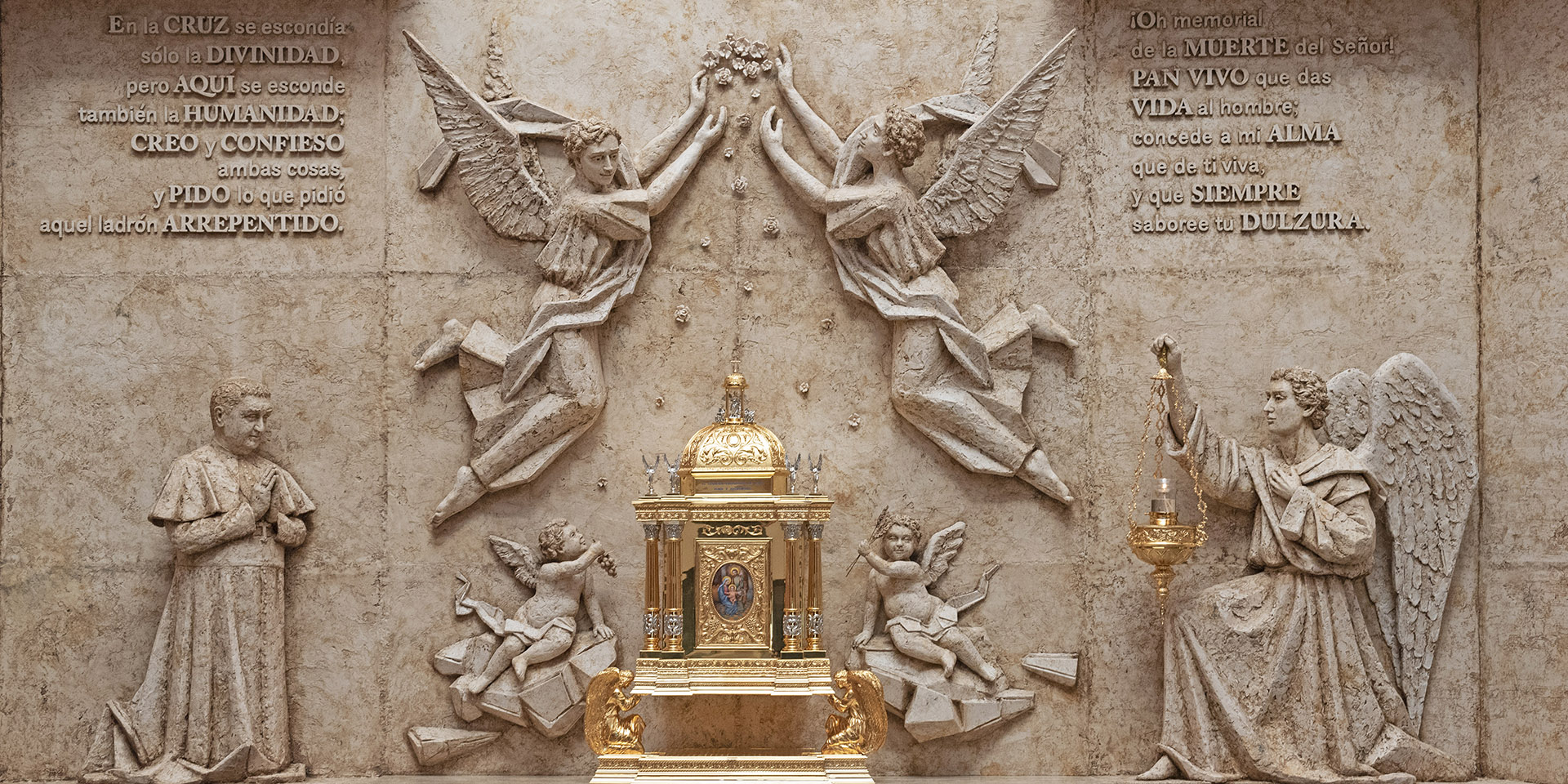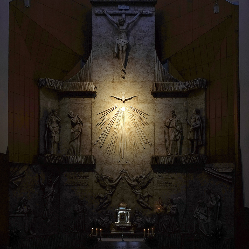 San Manuel hablaba de Sagrario – Calvario: igual que la Virgen y San Juan acompañaban a Jesús al pie de la cruz, San Manuel animaba a cada persona a la adoración y compañía del Señor en el sagrario.
